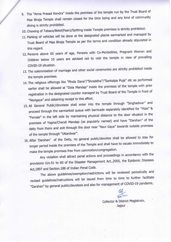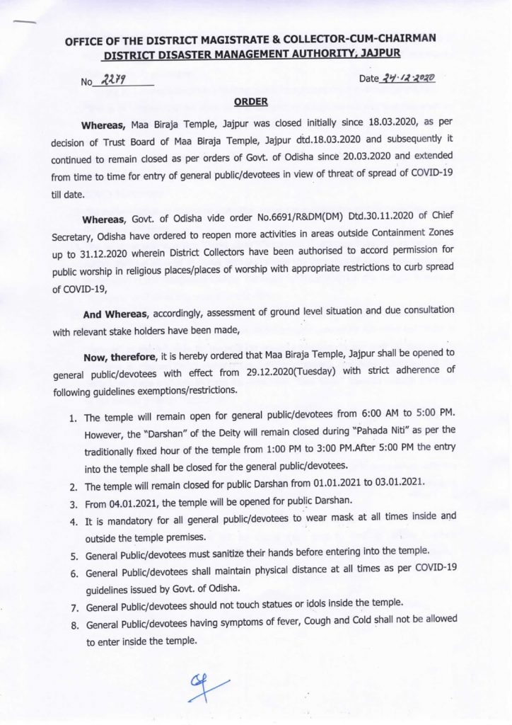 Good news for All devotees Maa Biraja Temple remain open on 29-Dec-2020.