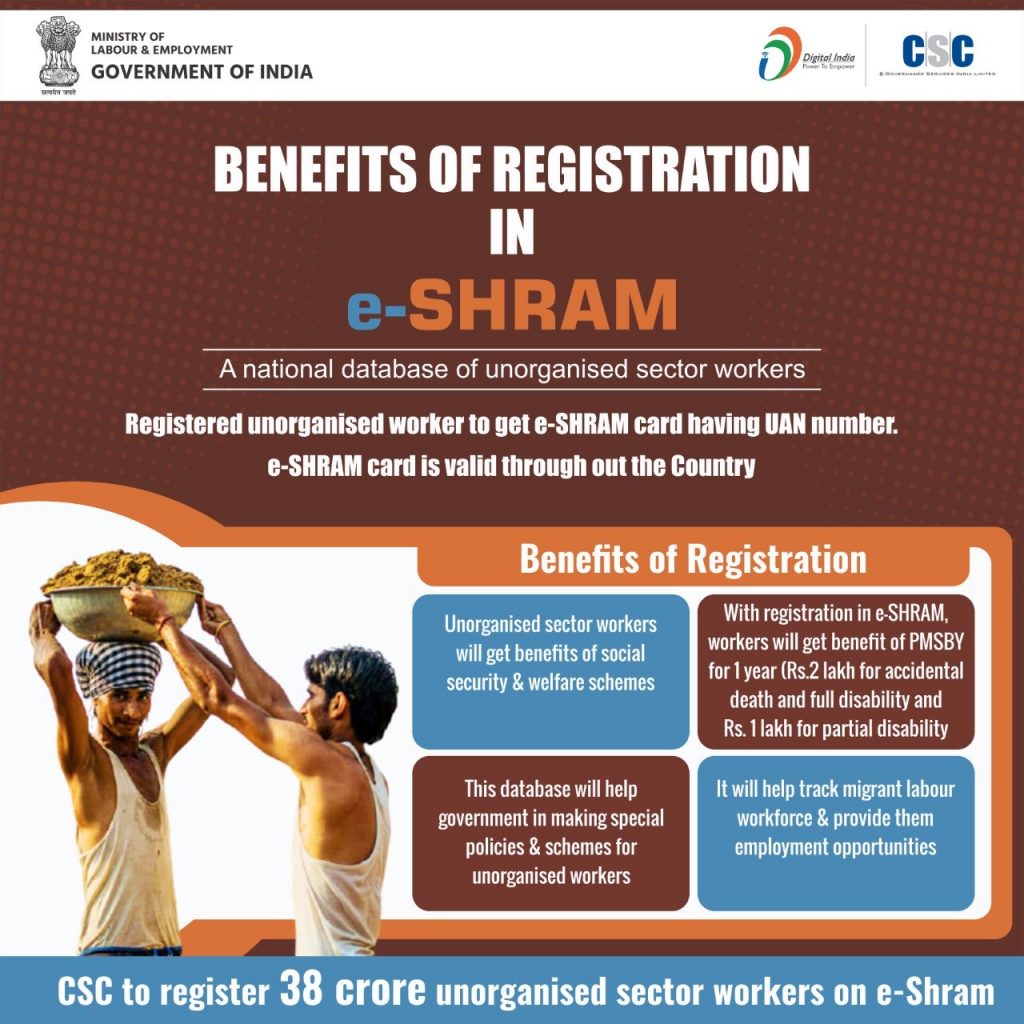 Every Unorganized Worker, even the one standing in last line, will be linked with various Social Security schemes through e-SHRAM Portal, a National Database of Unorganized Workers, to be launched on 26th August, 2021.