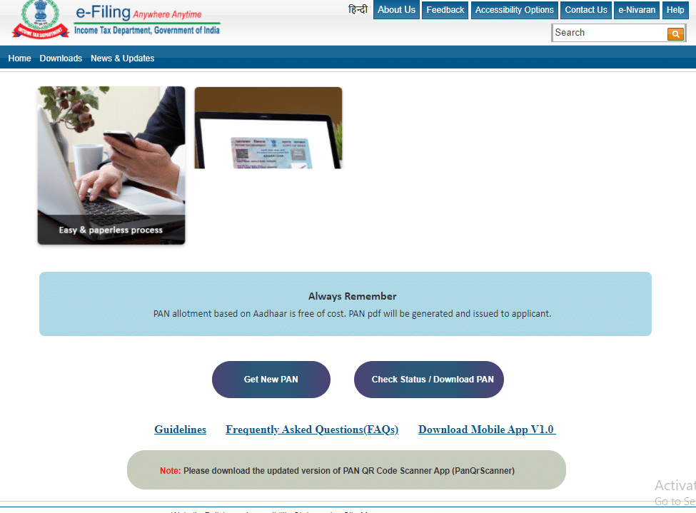 In order the Income tax department lunched new site for pan card through Aadhar card , Now easily apply PAN with in 10 min get your new pan card.