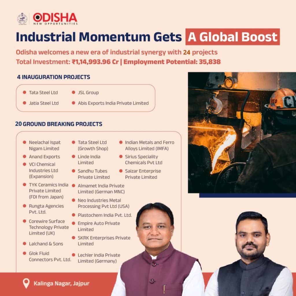 This event reflects the Odisha government’s commitment to transforming the state into a leading industrial hub, aligning with the ‘Samruddha Odisha’ vision for economic growth and employment generation.