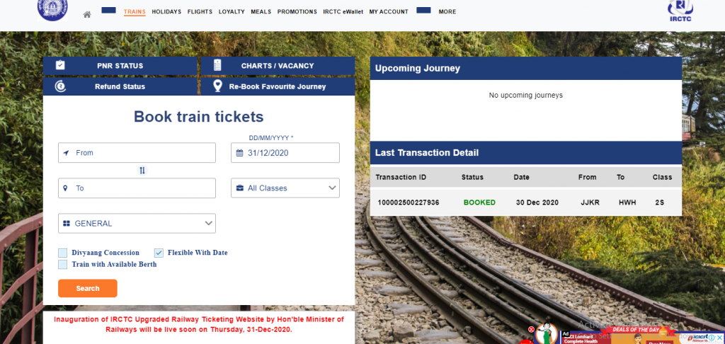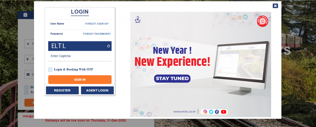 Inauguration of IRCTC Upgraded Railway Ticketing Website by Hon’ble Minister of Railways will be live soon on Thursday, 31-Dec-2020.