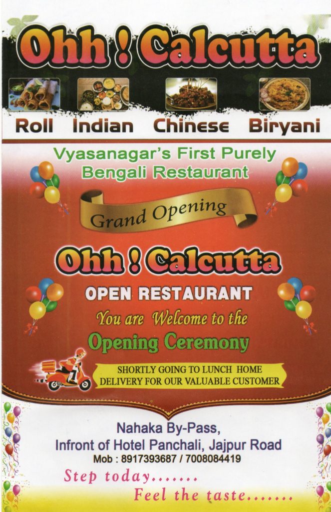 Ohh ! Calcutta , Vyasanagar’s (Jajpur Road) First Purely Bengali restaurant Open on 08-Aug-2021 (Sunday)